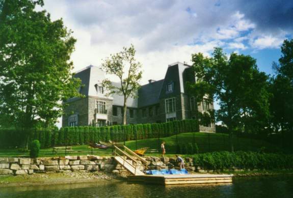 Em Agosto de 2001, depois de alguns anos em construção, foi concluída a nova casa de Celine Dion no Canadá. Este belíssimo edifício foi construído numa ilha que se situa na zona de Laval, no Quebéc. Um local bastante sossegado, praticamente inacessível aos mais curiosos, uma vez que a única forma de entrar na propriedade é através de uma ponte que está fortemente vigiada por seguranças. A ilha foi comprada em 1997, por 9 milhões de dólares canadianos, contudo, foi necessário reconstruir por completo o velho castelo que lá estava situado. Por essa razão pode-se imaginar que esta casa de sonho foi tudo menos barata... Para além disso, várias casas situadas junto à ponte que conduz à ilha foram compradas por Celine para serem utilizadas como casas de hóspedes. Em maio de 2012, Celine colocou a propriedade à venda por 29,5 milhões de dólares.